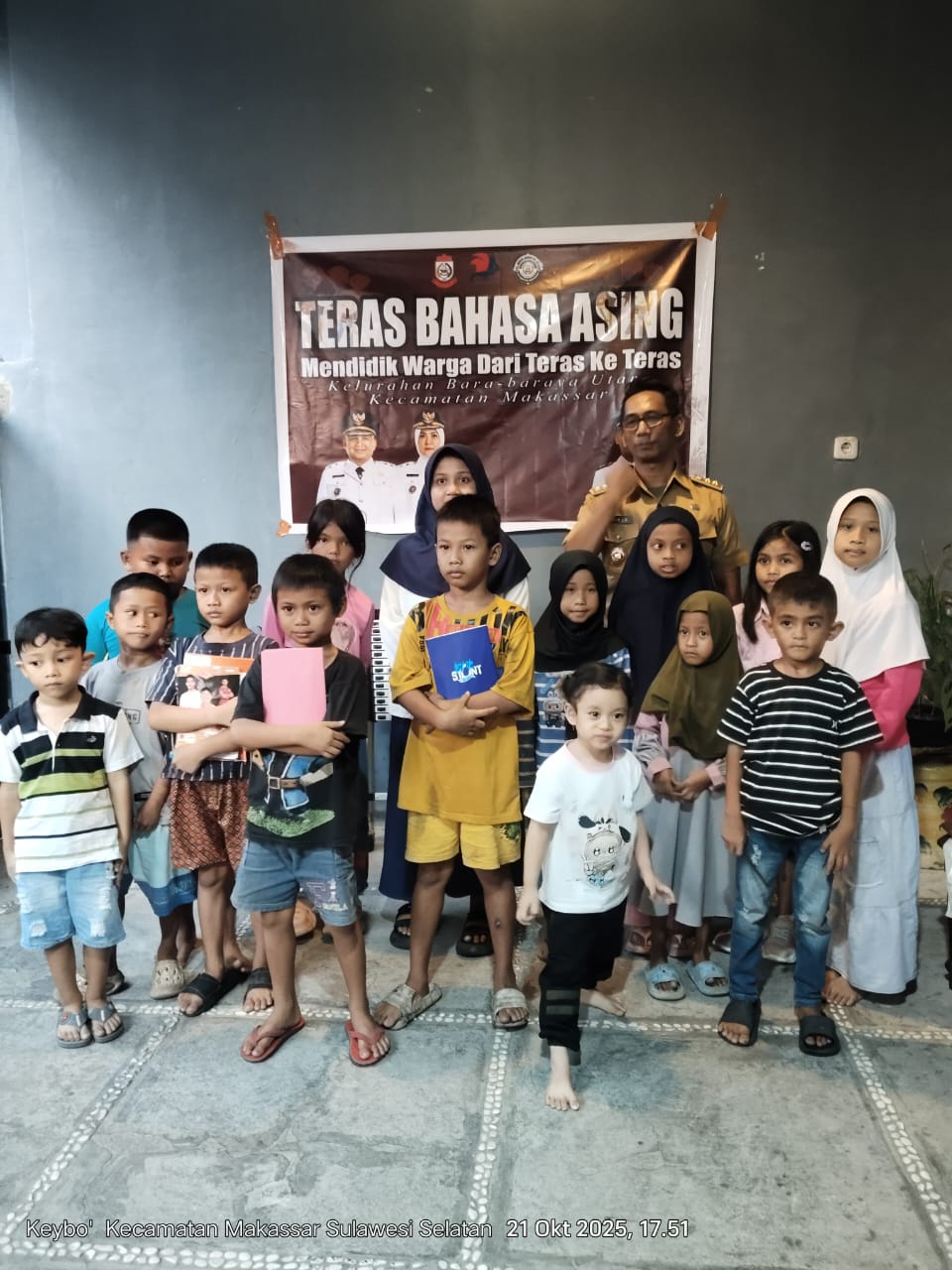 Dalam rangka mendukung peningkatan kualitas sumber daya manusia di tingkat kelurahan, Lurah Bara Baraya Utara Kecamatan Makassar, Adam Lotong Sembe, S.Sos., MM, meluncurkan Program Teras Bahasa Asing, sebuah kegiatan pembelajaran Bahasa Inggris gratis yang menjadi bagian dari inovasi Pemerintah Kota Makassar di bidang pendidikan.