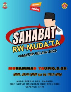 Alumni Universitas 45 Bosowa ini secara resmi menyatakan diri sebagai Bakal Calon Ketua RW 06 Tello Baru dengan mengusung tagline “SAHABAT RW MUDA’TA: #MANTAP MELAJU 2025”.