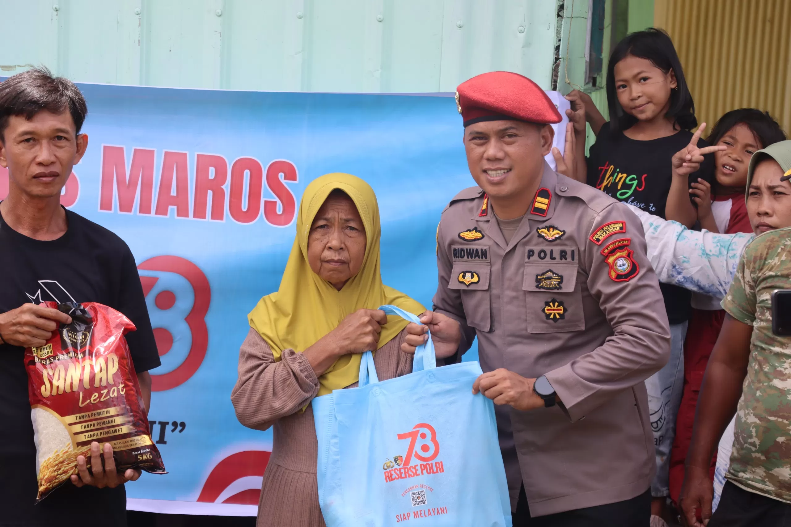 Maros, Sulsel. Infopublic.id| Memperingati Hari Ulang Tahun (HUT) Reserse Polri ke-78, Satuan Reserse Kriminal (Sat Reskrim) Polres Maros bersama Reskrim Polsek jajaran melaksanakan kegiatan bakti sosial dengan menyalurkan paket sembako kepada masyarakat yang membutuhkan, Sabtu (6/12/2025)