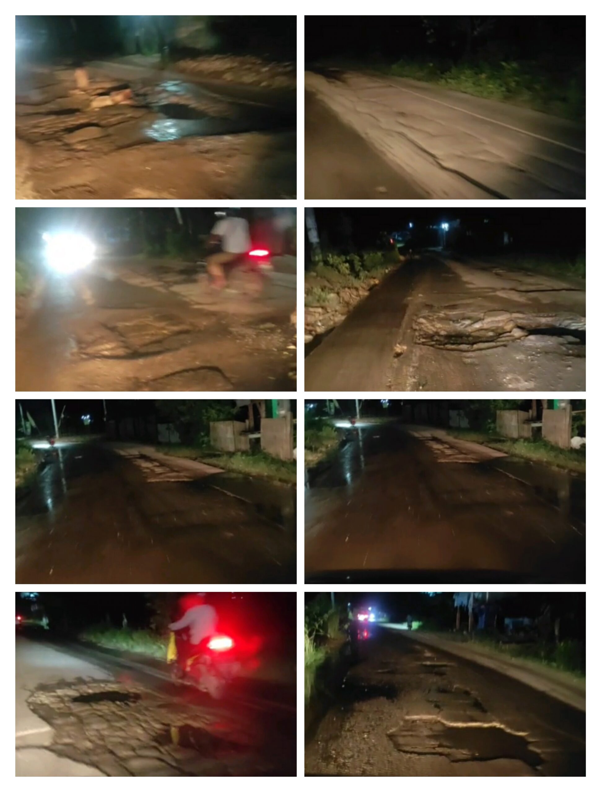 “Kalau malam hari sangat rawan. Pengendara harus ekstra hati-hati karena lubangnya cukup dalam dan tersebar di beberapa titik,” ujar salah seorang warga setempat.